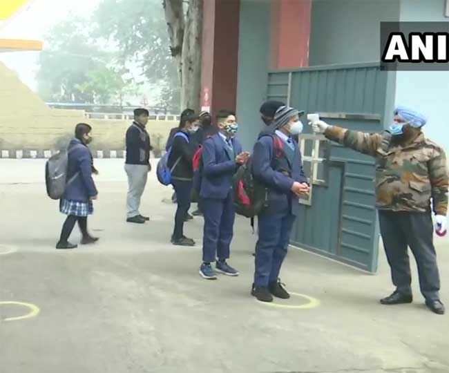 स्कूलों में विद्यार्थियों के बीच शारीरिक दूरी का पालन किया जा रहा है। स्कूलों में पहुंचने पर विद्यार्थियों की जांच की गई और उनको सेनेटाइज किय गया। उनकी थर्मल चेकिंग की गई और शरीर का तापमान किया गया। स्कूलों के गेट पर ही विद्यार्थियों को सेनेटाइजर उपलब्ध कराया गया। विद्यार्थियों के लिए मास्क पहनना जरूरी किया गया है। शिक्षकों को भी पूरी जांच प्रक्रिया से गुजरना पड़ा। उनका भी हेंड सेनेटाइजेशन किया।