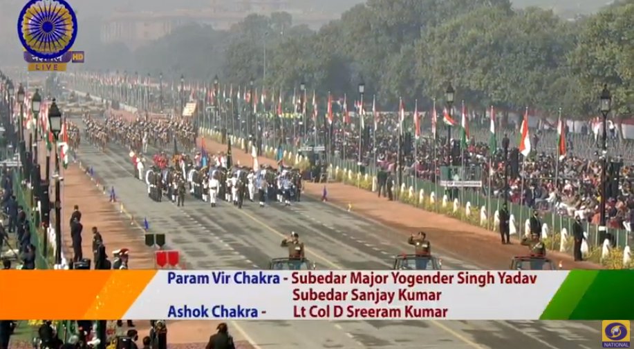 गणतंत्र दिवस के मौके पर परमवीर चक्र विजेता और अशोक चक्र विजेता राजपथ पर परेड किया।