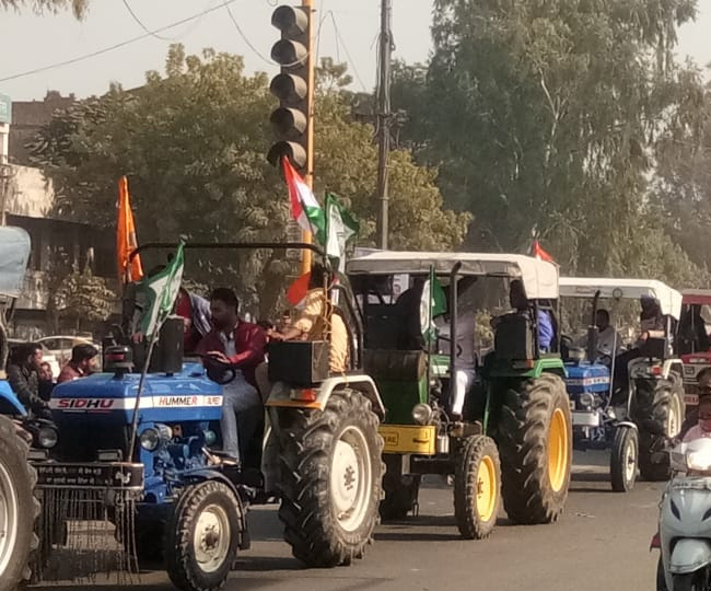 फाजिल्का में किसानों ने एक हजार ट्रैक्टरों पर निकाला मार्च