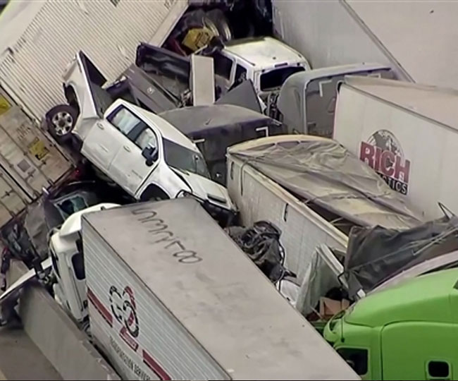 अमेरिका के कुछ हिस्सों में बर्फीले तूफान की वजह से पूरी सड़क पर बर्फ की चादर बिछ गई थी और माना जा रहा है कि हादसा इसी कारण हुआ है। टेक्सास के के फोर्ट वर्थ (Fort Worth) में हुई यह दुर्घटना इतनी भयंकर थी कि गाड़ियां एक दूसरे के ऊपर चढ़ गईं। कई कारें ट्रकों के नीचे दब गईं। अधिकारियों ने बताया कि टेक्सास (Texas) के फोर्ट वर्थ में हुई दुर्घटना के बाद करीब दो किलोमीटर से ज्यादा का क्षेत्र प्रभावित रहा।