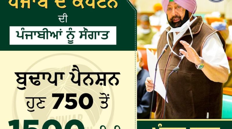Punjab कैप्टन सरकार ने वृद्धावस्था पेंशन योजना को 750 से बढ़ाकर 1500 कर दिया March 9, 2021 Total India News 35 Views