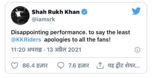 IPL 2021, KKR vs MI: हाथ आया मैच गंवाने के बाद अपनी टीम से निराश हैं शाहरुख खान, मांगी माफी और बयां किया अपना दर्द