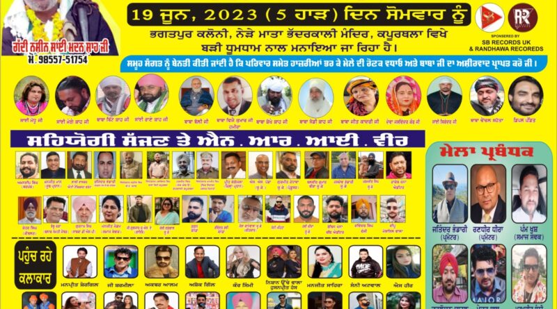 ਭਗਤਪੁਰ ਕਲੋਨੀ, ਜ਼ਿਲ੍ਹਾ ਕਪੂਰਥਲਾ ਵਿਖੇ ਪੀਰ ਬਾਬਾ ਰੱਤੜੇ ਵਾਲੀ ਸਰਕਾਰ ਜੀ ਦਾ ਸਲਾਨਾ ਮੇਲਾ ਬੜੀ ਸ਼ਰਧਾ ਤੇ ਉਤਸ਼ਾਹ ਨਾਲ ਮਨਾਇਆ ਜਾ ਰਿਹਾ ਹੈ