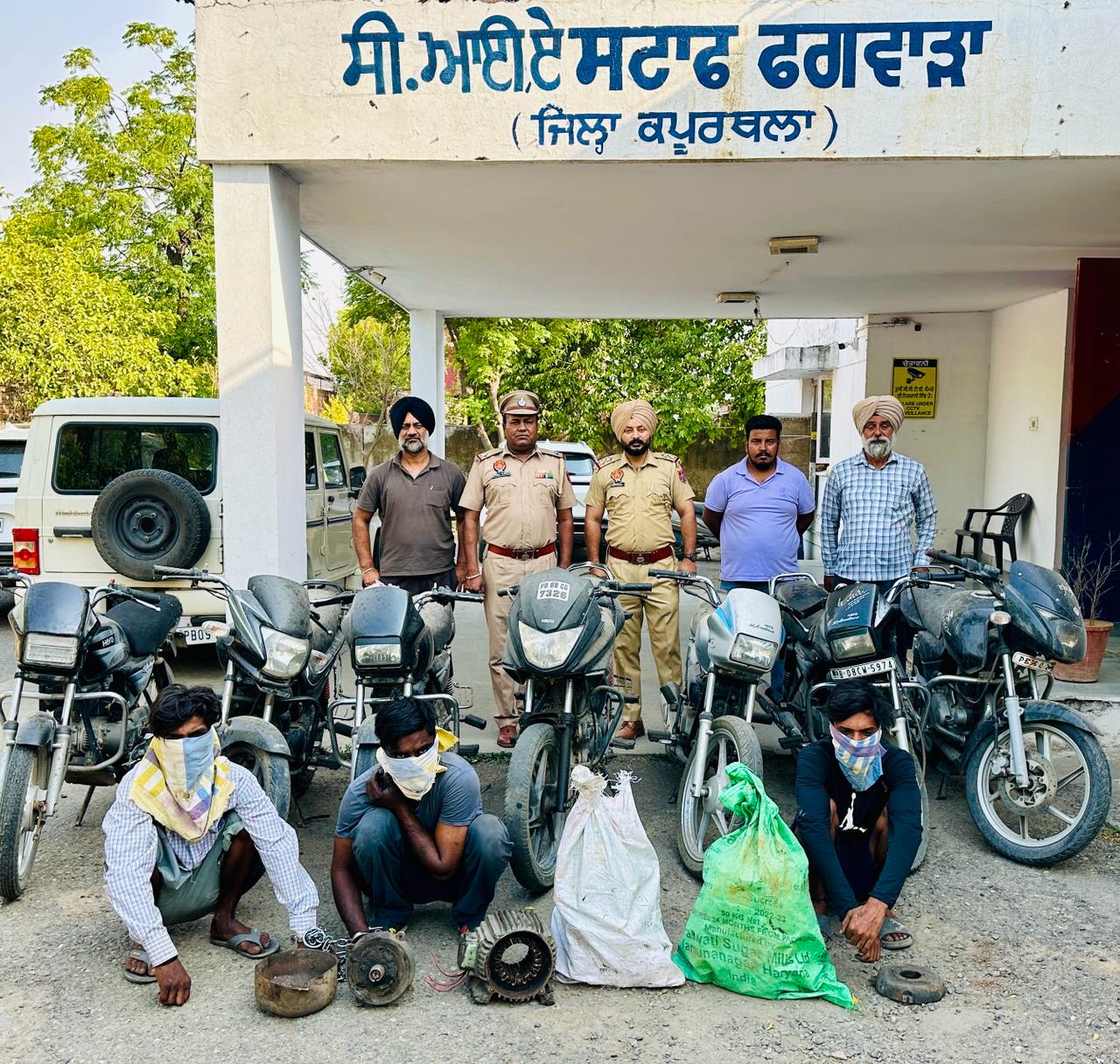 ਕਪੂਰਥਲਾ ਪੁਲਿਸ ਵੱਲੋ ਚੋਰੀ ਦੇ 07 ਮੋਟਰਸਾਈਕਲ, 01 ਮੋਟਰ ਅਤੇ 01 ਲੋਹਾ ਕਟਰ ਸਮੇਤ ਚੋਰ