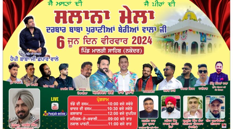 Read moreਪਿੰਡ ਮਾਲੜੀ ਦੇ ਦਰਬਾਰ ਬਾਬਾ ਪੁਰਾਣੀਆਂ ਬੇਰੀਆਂ ਵਾਲਾ ਦੇ ਅਸਥਾਨ ਤੇ ਸਲਾਨਾ ਮੇਲਾ 6 ਜੂਨ ਨੂੰ ਮੇਲੇ ਚ ਪੰਜਾਬ ਦੇ